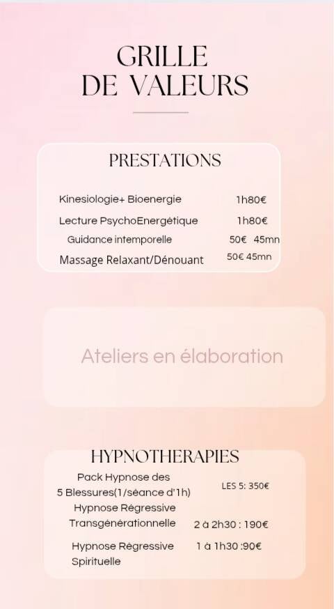Toute consultation, devra être réglée en amont de la séance. (non remboursable 48h avant la date fixée.)